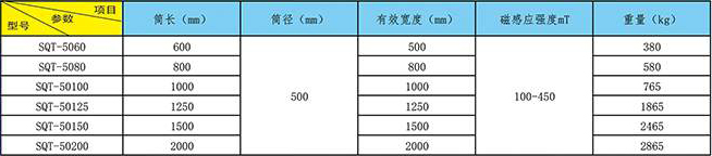 應(yīng)用領(lǐng)域 賽瑞特SQT系列強磁滾筒除鐵器用于回收鐵等磁性金屬,廣泛應(yīng)用于環(huán)保、礦山、廢鋼尾料等行業(yè)。 技術(shù)亮點 高梯度磁場、多磁級。 產(chǎn)品參數(shù)